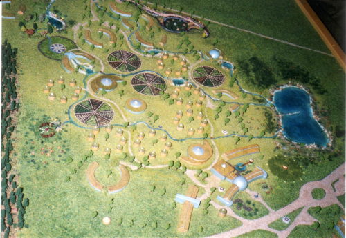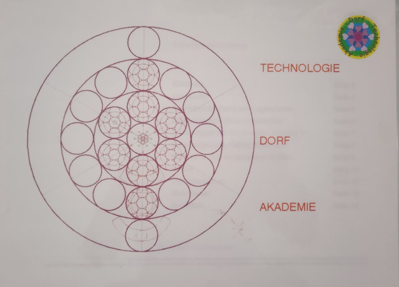 The Eco village The independent eco village – has 3 parts - Academy – Village – Technology – is giving home, education – and work for several hundred people – living in harmony with creation - living a life in paradise. The fundamental structure of my Eco Village is the flower of life. The complete design again is very simple – just circles within circles.